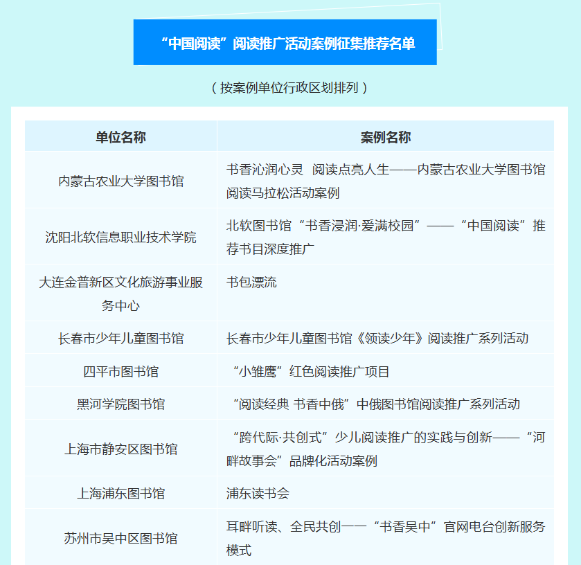 近日,第八届“中国阅读”阅读推广案例推荐名单正式揭晓,图书馆倾力打造的“书香沁润心灵·阅读点亮人生”——内蒙古农业大学图书馆阅读马拉松活动案例从全国众多优秀案例中脱颖而出,成功入选全国30个推荐案例,成为内蒙古本年度唯一获此国家级荣誉的图书馆。
