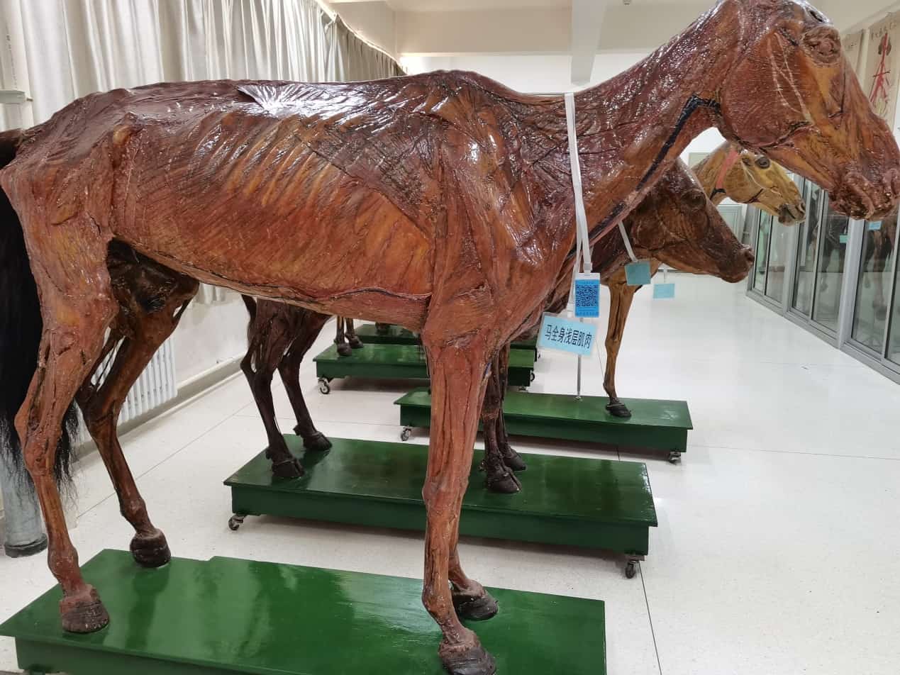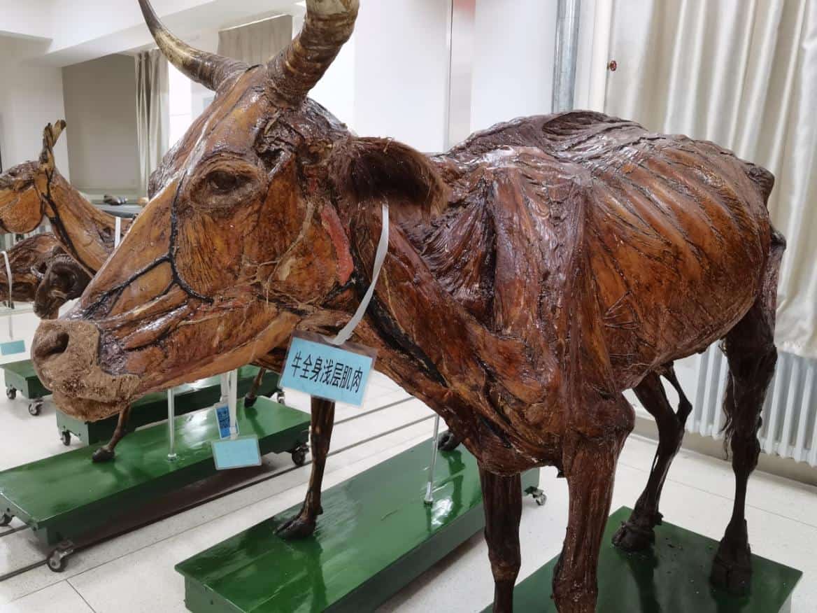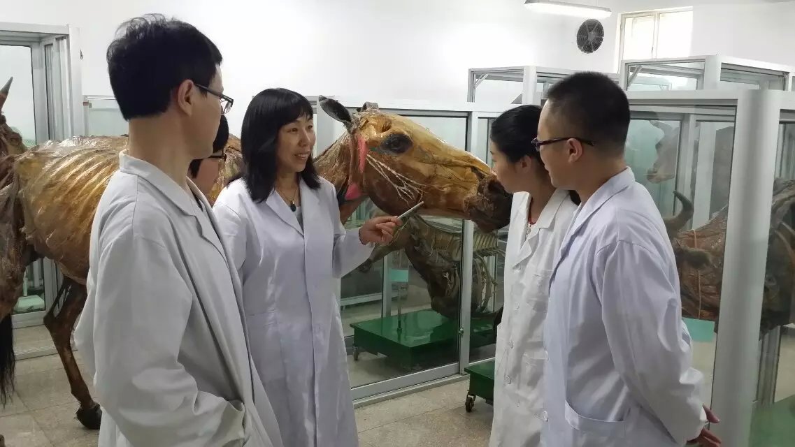 让我记忆深刻的是,大学一年级第一学期开设的第一门专业基础课——“家畜解剖学”。由于这门课属于形态学科,上课教室便与“家畜解剖学标本室”相邻,因此,学生可随时利用课间观察标本以巩固理论课内容,教师授课时也能随时展示有形可见的标本,便于学生理解记忆。俗话说“百闻不如一见”,我第一次上解剖课时,被标本室所陈列的标本所震惊,不仅有骨骼标本、浸制标本和剥制标本,还有冻干标本,尤其是骨骼标本和冻干标本,不仅有不同动物(牛、马、羊、猪、驴、鸡等)的分体标本,还有整体标本,特别是各种家畜的整体冻干标本栩栩如生,宛如活物。标本有的展示浅层肌肉,有的展示深层肌肉,且清晰呈现血管和神经走向;有的展示左侧内脏,有的展示右侧内脏,这些标本几乎涵盖了家畜解剖学理论课的讲授内容,因此,最大限度地支撑了本科教学。