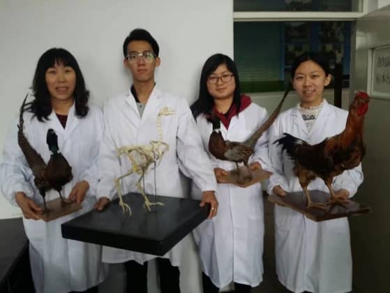 杨银凤老师指导学生制作鸡的骨骼和剥制标本