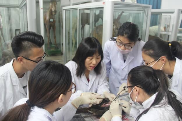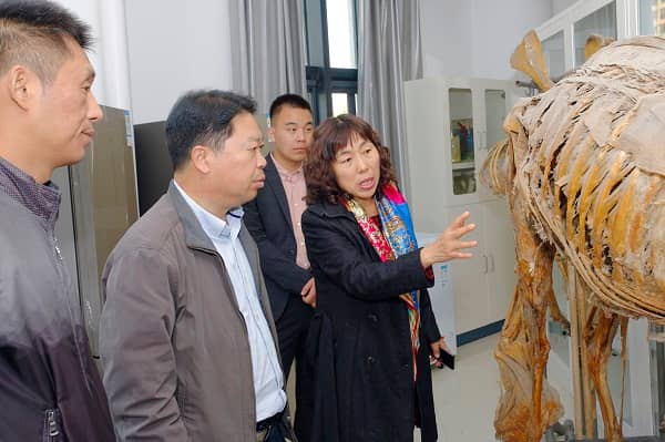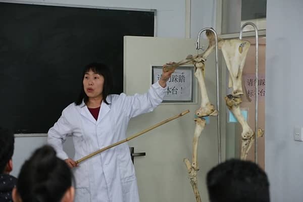 杨银凤老师利用标本给学生讲授“家畜解剖学”课程