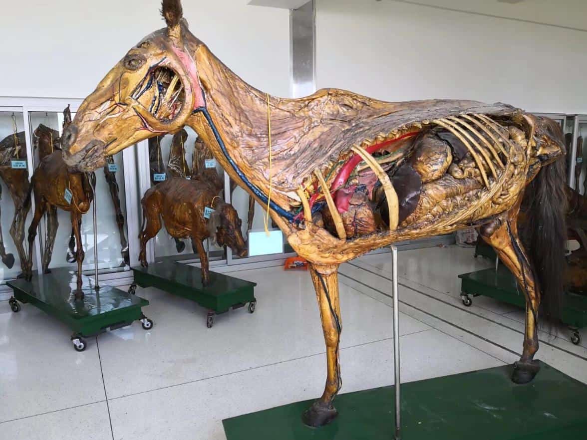 马整体冻干标本(显示左侧面内脏、血管、神经及深层肌肉)