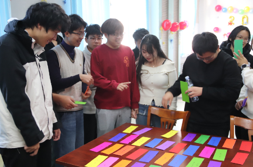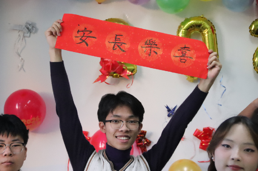 “谜语寻福”活动也深受学生喜爱,几十条谜语涵盖国学知识、校园文化、春节习俗等多个领域。谜语由各社团共同策划,其中不乏结合专业知识的创意题目,如“草木生芽迎新春,打一农学名词”,谜底:“返青”,让学生在猜谜过程中既感受趣味,又巩固专业知识。