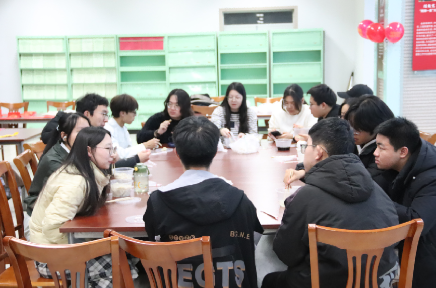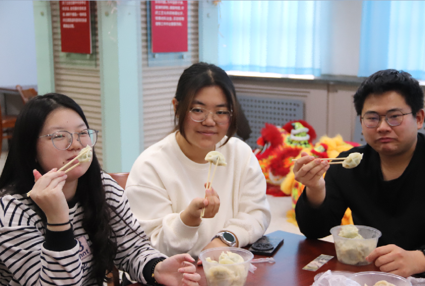 团圆饺子宴,舌尖年味,情暖校园。活动尾声,学生们自发围坐成几大桌,桌上摆满了热腾腾的饺子,咬下第一口饺子,暖意瞬间在舌尖散开,更在心底悄然流淌。一位2025级同学眼眶微红:“这是我第一次离家过新年,本来还有点孤单,没想到能和这么多同学一起吃饺子。刚咬到饺子的时候,突然就想起了妈妈包的味道,感觉特别温暖。”不少同学纷纷表示:“这不仅是一顿饺子宴,更是一场团圆与暖心的家宴,让我们在异乡感受到了家的温馨与农大的关怀。这样有温度、有文化内涵、有责任感的活动,我们会永远记忆珍藏。”不同学院、不同专业的学生们边吃边聊,大家畅谈新年愿景,现场充满了团圆的喜悦。