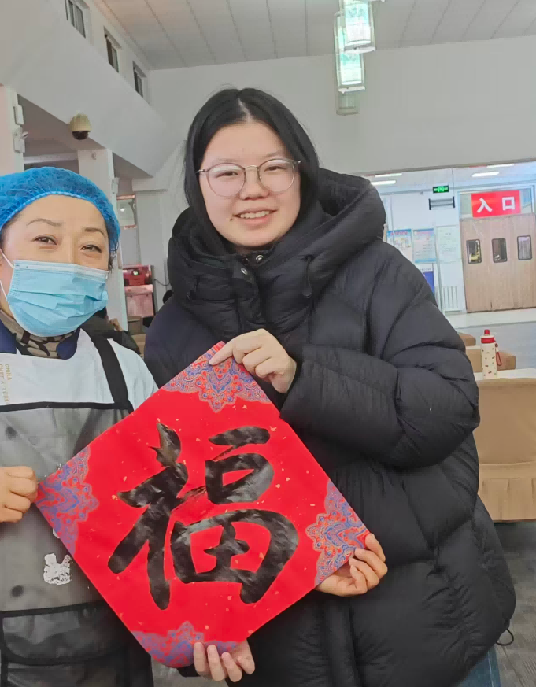 活动后,学生们带着活动中精心书写的春联与福字,走进学校各食堂,为坚守岗位的食堂职工送上新春祝福。同学们还主动帮助职工们将福字贴在食堂的门窗上,红彤彤的福字瞬间为食堂增添了浓厚的节日氛围。此次活动旨在感谢食堂职工一年来的辛勤付出,让他们在忙碌的工作中感受到校园的关怀与节日的温暖,既培养了学生的感恩之心,也让传统文化在温情互动中传递。