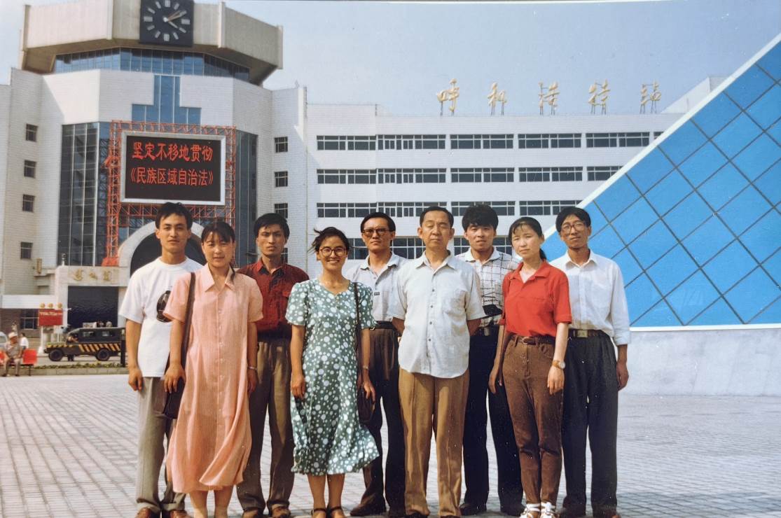 与93级做毕业论文的学生赴外地实习(赵丽芹前排左二) 1988年内蒙古农牧学院(现内蒙古农业大学)食品工程系正式成立,我随果品贮藏加工课程组全体教师从农学系果树教研室整体转入食品工程系,并与原农学系蔬菜专业的蔬菜贮藏加工的教师,共同组建了农产品贮藏加工教研室。那一年我正值青