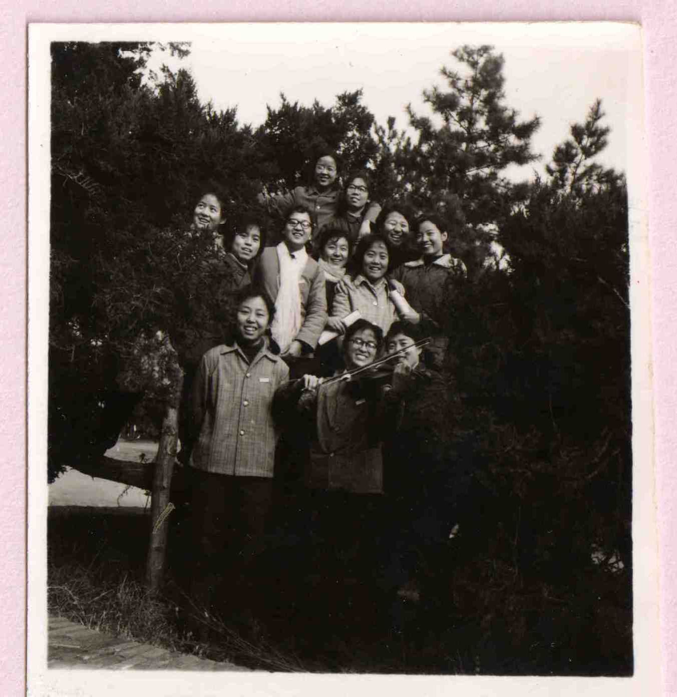 大学时期和班级女同学们在校园中(赵丽芹中间提琴手)